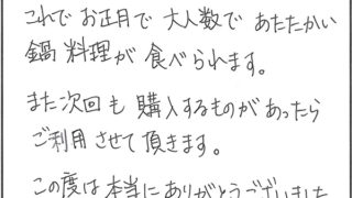 お客様からのメッセージ しなちく様からのメッセージ「何やら関心した」