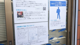 こんにちは、久保店長です。ご近所さんや配送業者の皆さまに、ちょっと楽しんでいただけるよう事務所の側面に掲示物を貼ることにしました。 現在は事務所の自己紹介やお客様から頂きましたメッセージ、運送ドライバーさんへのメッセージなどを掲示しています...